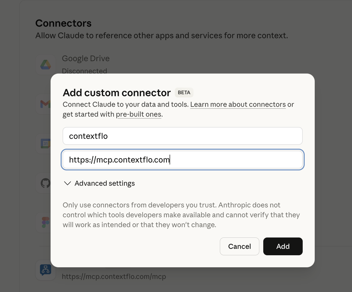 - Click on "Connect" and you'll be redirected to ContextFlo to authorize